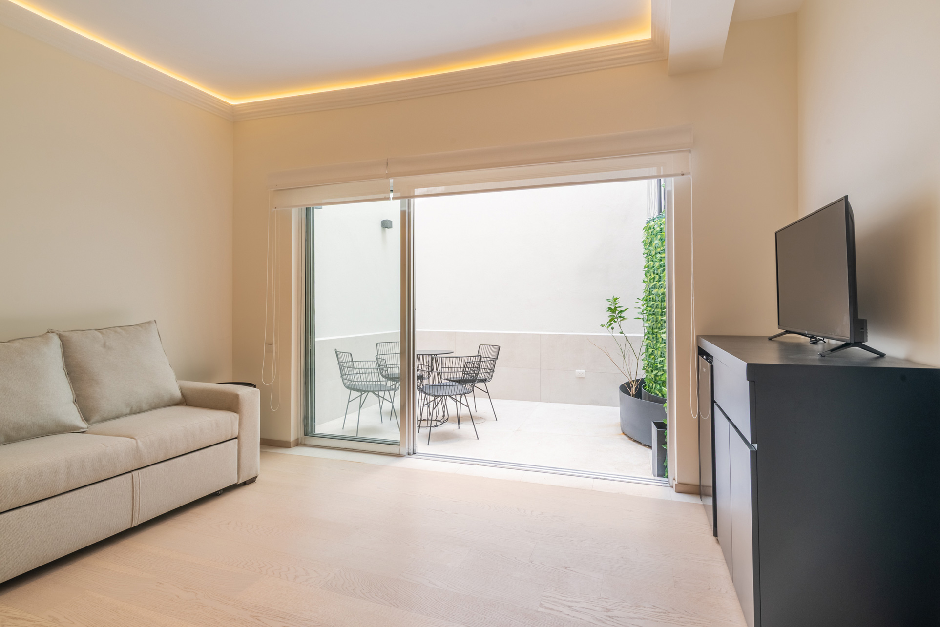 Para 4 personas, un apartamento amplio con cama king size, sofá cama, cocineta equipada, comedor, sala, terraza y balcón. Perfecto para una familia pequeña o parejas que viajan con amigos y quieren disfrutar de la vibra relajada de la Condesa desde su propio rincón acogedor.